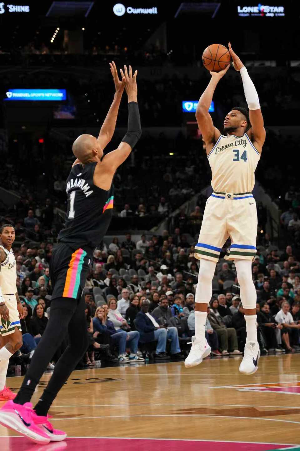 马刺过去两场连续客场输给森林狼与雷霆遭遇2连败,雄鹿过去两场连输掘金与森林狼遭遇2连败。本场马刺缺少瓦塞尔,雄鹿缺少普林斯。首节开局文班亚马与字母哥膝盖对撞受伤,文班亚马被换下场接受检查,双方从5-5缠斗至马刺11-10领先。尚帕尼三分命中,字母哥连续冲击内线追到17-17,马刺一波7-0攻势取得领先,雄鹿回敬一波10-4攻势追到差1分。福克斯三分命中,首节结束马刺31-27领先雄鹿。首节雄鹿24中9,其中三分12中4,字母哥5中4得到14分;马刺17中9,其中三分9中5,福克斯7中5得到12分。