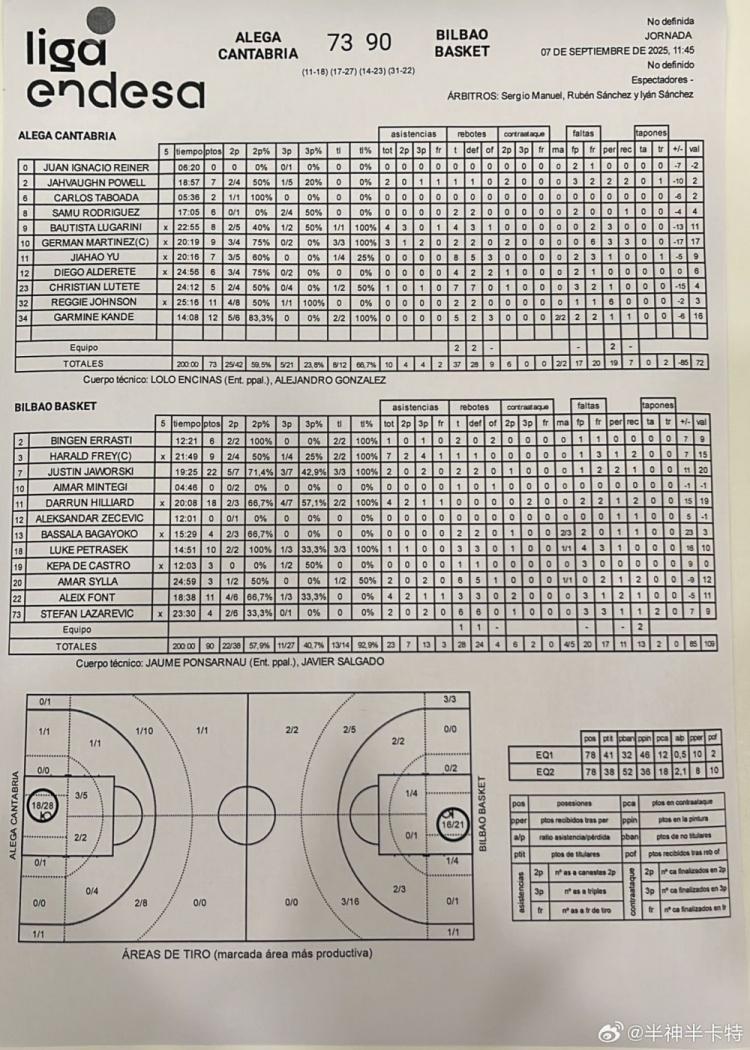 余嘉豪刚去西班牙不久,就迎来了自己的首场比赛,最终余嘉豪所在的Alega Cantabria队以73-90不敌母队毕尔巴鄂。