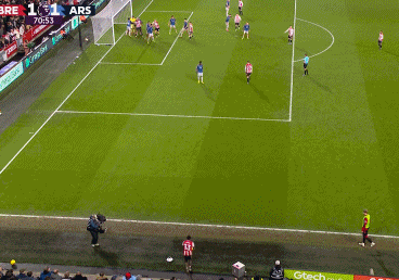 第22分钟,布伦特福德前场右路边线球扔到禁区,拉亚得球发起进攻失误,布伦特福德传中到禁区,拉亚神扑化解头球攻门。