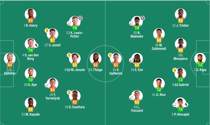 布伦特福德首发:1-凯莱赫、3-里科·亨利、4-范登贝尔赫、20-阿耶尔、23-刘易斯-波特(73'6-亨德森)、33-卡约德、8-延森、18-亚尔莫柳克(73'24-达姆斯高)、27-雅内特、9-伊戈尔·蒂亚戈、19-瓦塔拉
