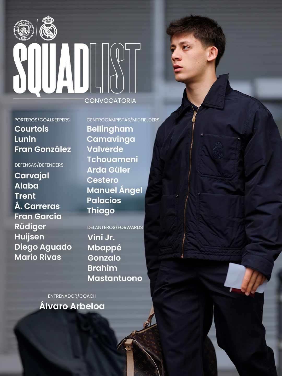 后卫:卡瓦哈尔、阿拉巴、阿诺德、卡雷拉斯、弗兰·加西亚、吕迪格、赫伊森、阿瓜多、马里奥·里瓦斯