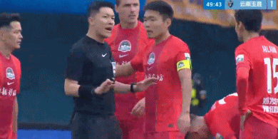在奥斯卡破门之后,王上源等河南球员围住主裁判争辩,认定姆布拉禁区内倒地应该判罚点球。随后,视频助理裁判介入判罚,最终认定奥斯卡并不越位,进球有效。