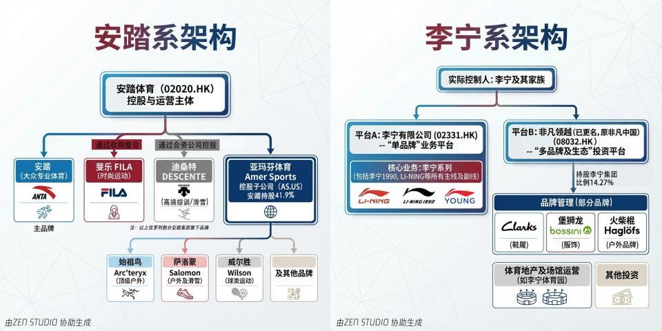 安踏的高估值,很大程度源于其多品牌矩阵的持续发力:迪桑特(Descente)、可隆(Kolon)及亚玛芬体育运营的始祖鸟(ARC'TERYX)、萨洛蒙(Salomon)等高端户外运动品牌,正在持续贡献增量。