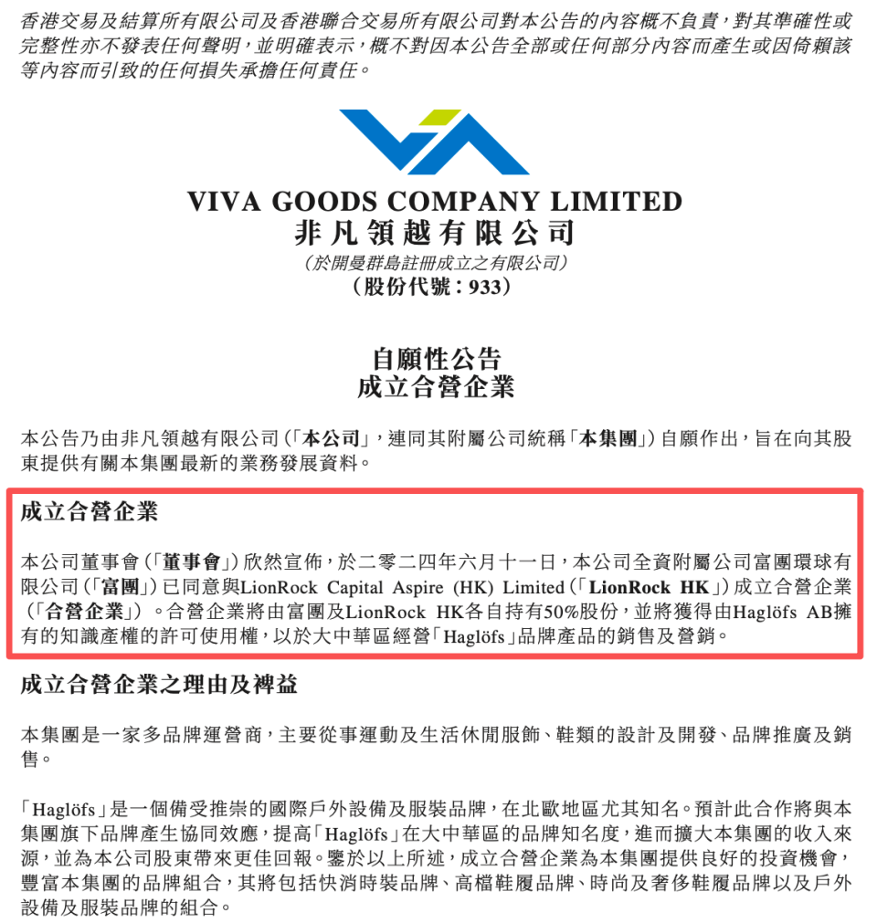 2023年,莱恩资本从亚瑟士手中收购火柴棍100%股权。2024年6月,港股上市公司非凡领越发布公告,旗下全资附属公司富团环球有限公司与莱恩资本将成立合营企业,各持50%股份,获得Haglöfs独家运营权。